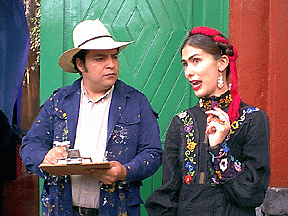 figures. Occasionally, a group of young actors play Diego and Frida to